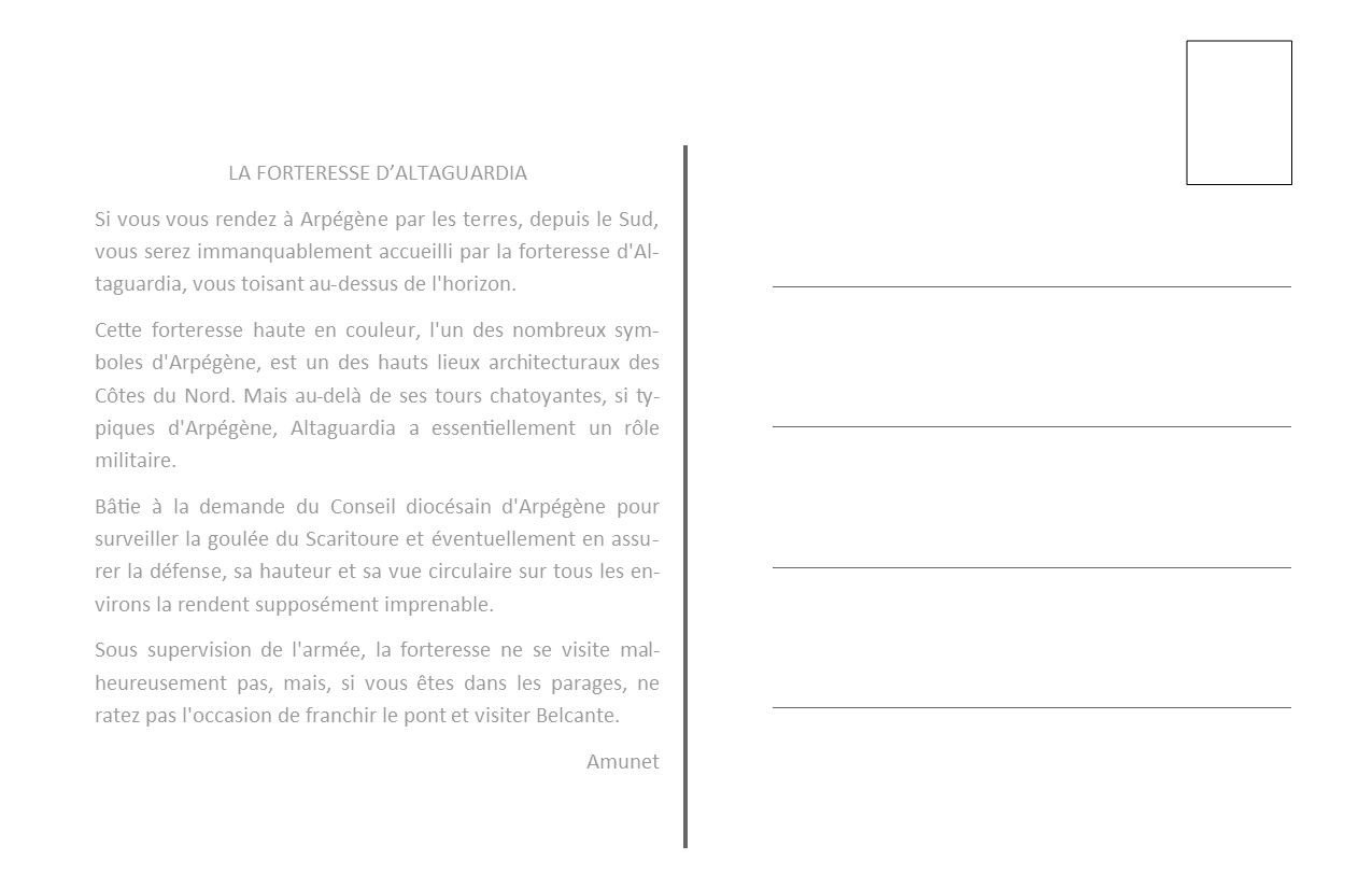 nouvelle carte postale, la Forteresse d'Altaguardia, à Arpégène