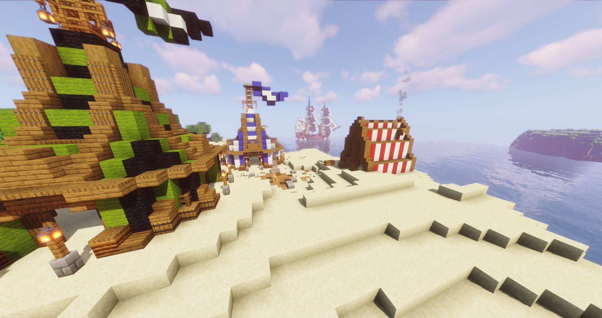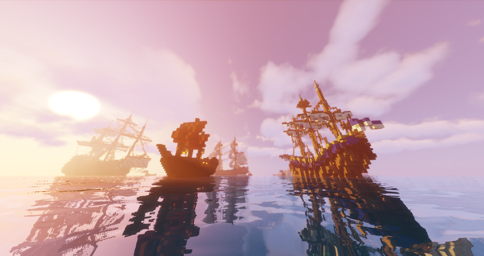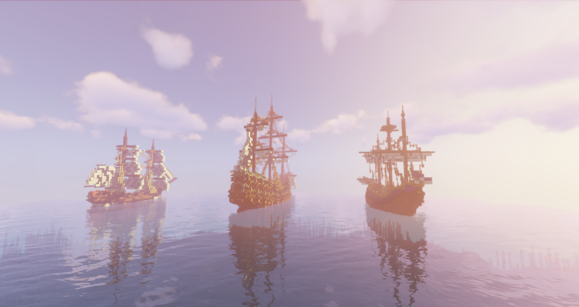 De gauche à droite ci-dessus : Le Félon, sloop d'Obert, L'Edouard II, navire d'Artagnia et La Griselda, nef d'Arpégène.